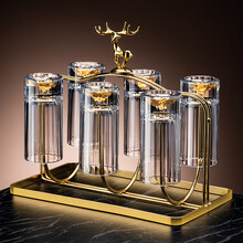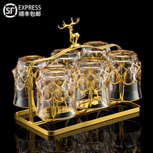 VINOS轻奢描金威士忌杯洋酒杯子家用高档水晶玻璃杯果汁杯啤酒杯具套装 甄选描金款6只+麋鹿杯架 350ml