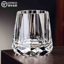 VINOS江户切子旋转威士忌洋酒杯高档水晶玻璃星芒杯洛克杯手工啤酒杯子 陀螺水晶杯220ML【透明款】+礼盒