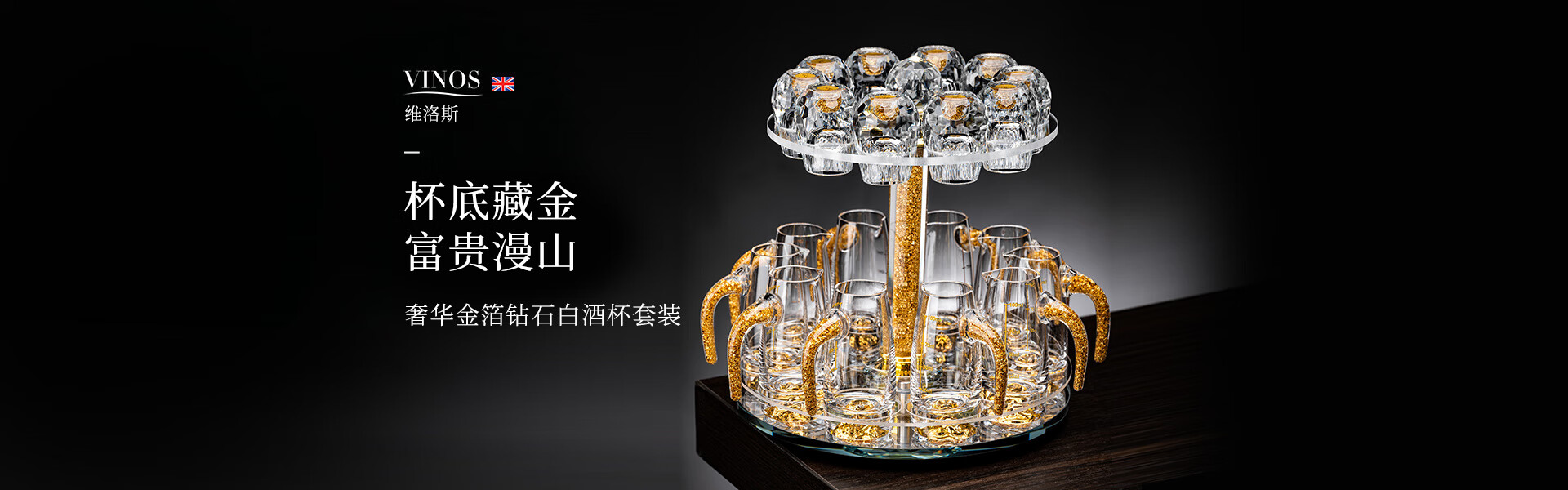 VINOS白酒杯套装家用小酒杯子高档水晶玻璃分酒器套装10壶10杯酒杯酒具 10壶10杯+金箔杯架【礼盒】