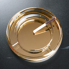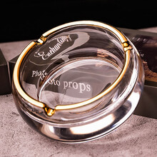 VINOS描金烟灰缸创意个性办公室高档大号水晶烟灰缸家用客厅摆件 圆形透明描金款15CM
