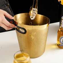 VINOS创意不锈钢冰桶香槟桶冰块桶冰粒桶商用家用聚会大号冰桶酒具酒吧 金色4L+冰夹