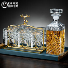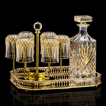 VINOS奢华手工描金水晶威士忌酒杯酒樽套装玻璃洋酒杯烈酒杯子高档酒具 酒尊+杯架+托盘+6只钻石款 230ml
