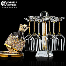 VINOS欧式奢华金箔水晶红酒杯套装醒酒器家用高档葡萄酒高脚杯子酒具 波尔多*6+描金醒酒器+杯架 450ml