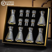 VINOS轻奢白酒杯酒具礼盒套装分酒器家用高档清酒小酒杯子客户乔迁礼物 六六大顺【6杯6壶】+礼盒